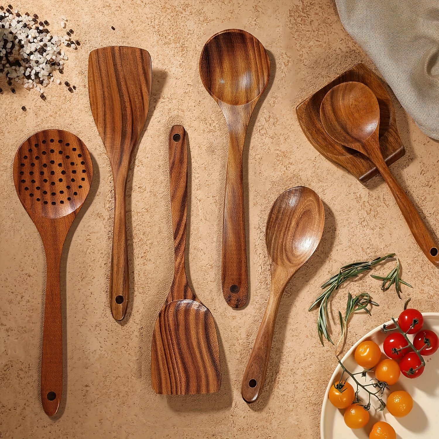 10/6/4pcs Natural Teak Cooking Utensil, Ergonomic Handles, Non-Porous Surface, Elegant Kitchen Gift – Durable and Easy to Clean, Natural Teak Grain, Suitable for Daily and Special Use, Kitchenware, Heat-Resistant Utensils.