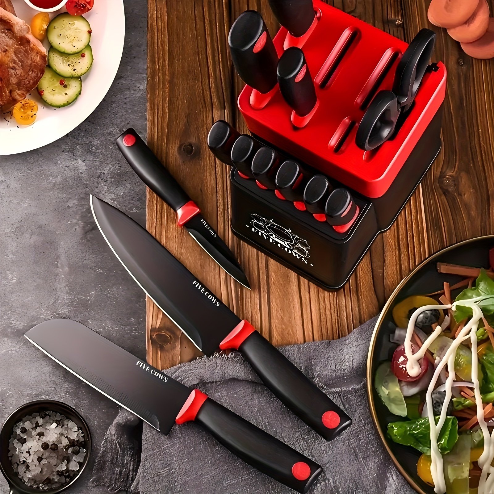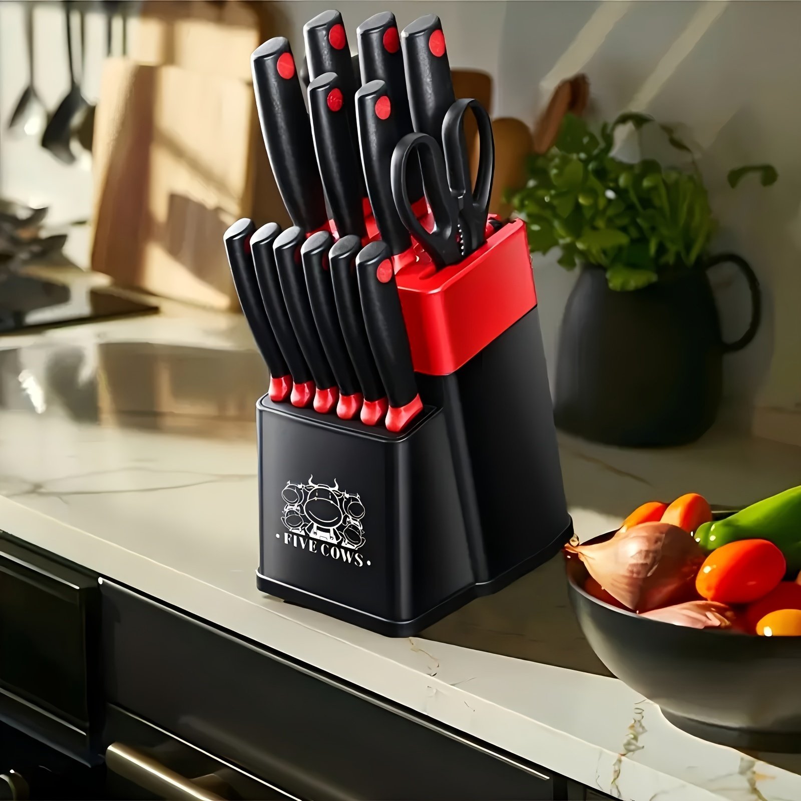 Be the first to review “14pcs Kitchen Knife Set | High Carbon Stainless Steel Blades, German Stainless Steel, Dishwasher Safe, Built-in Sharpener, Non-Slip Handles, Ambidextrous, Black and White” Cancel reply