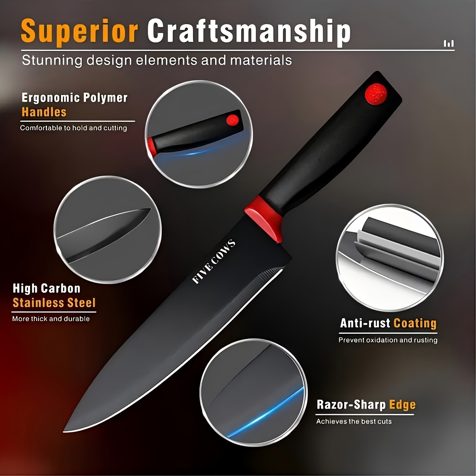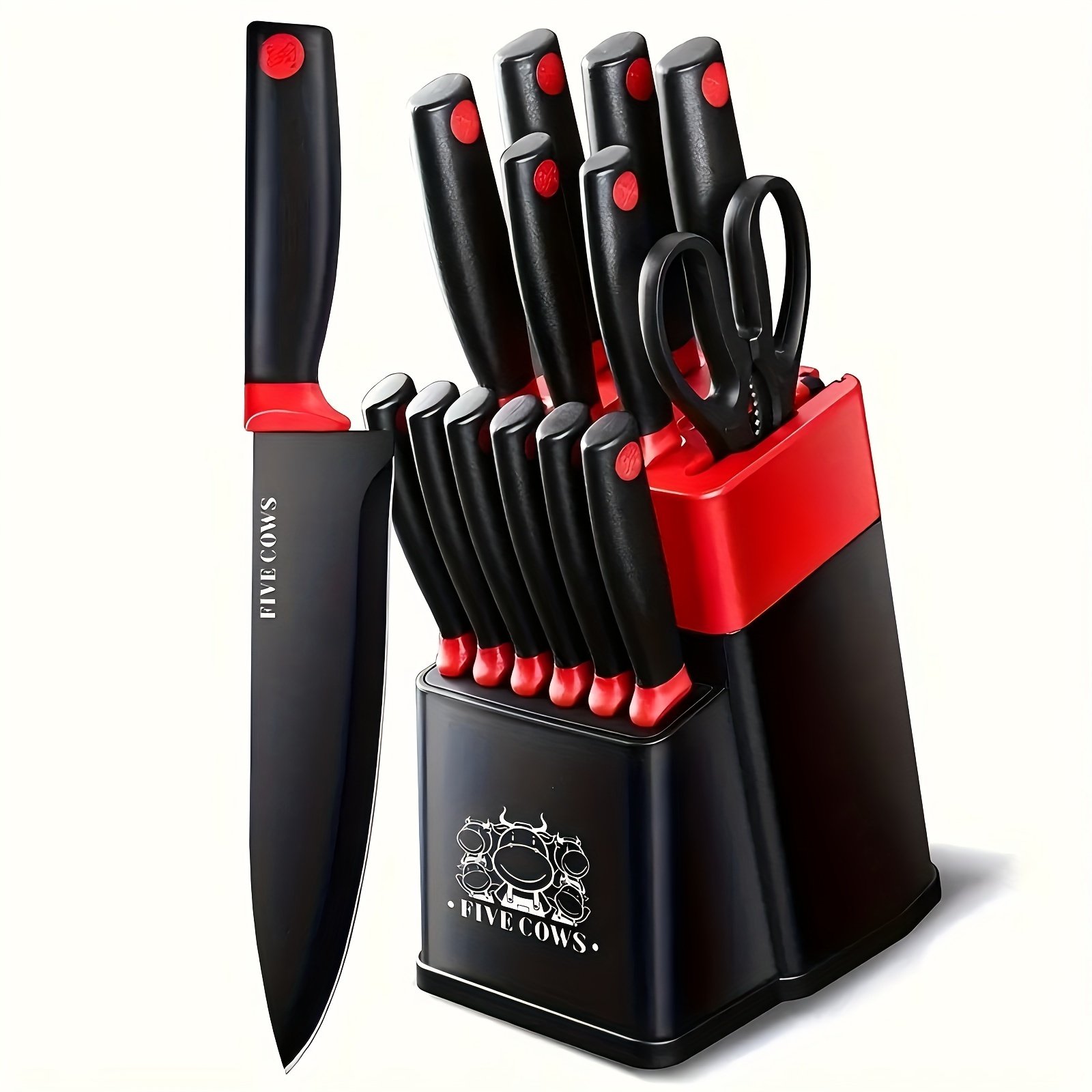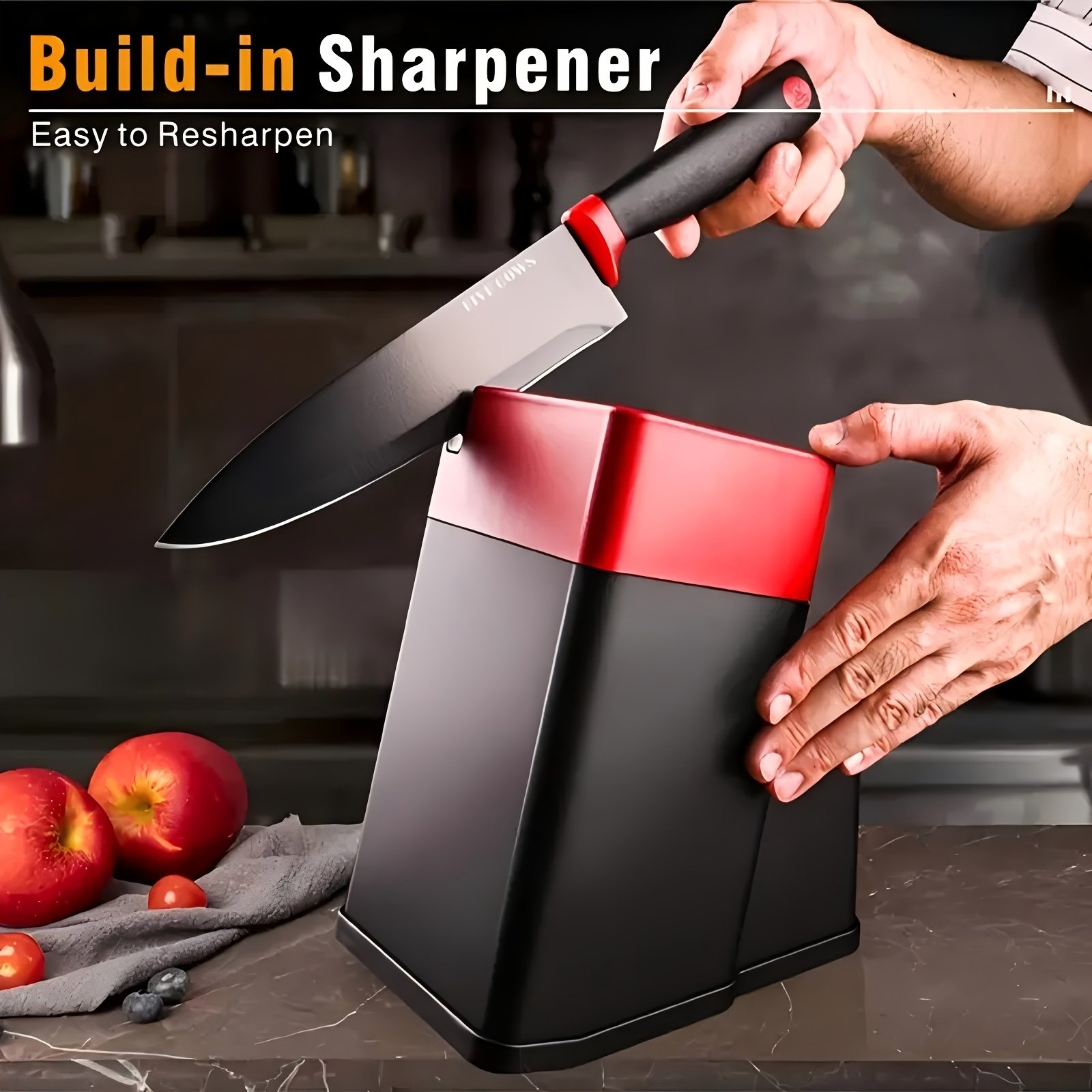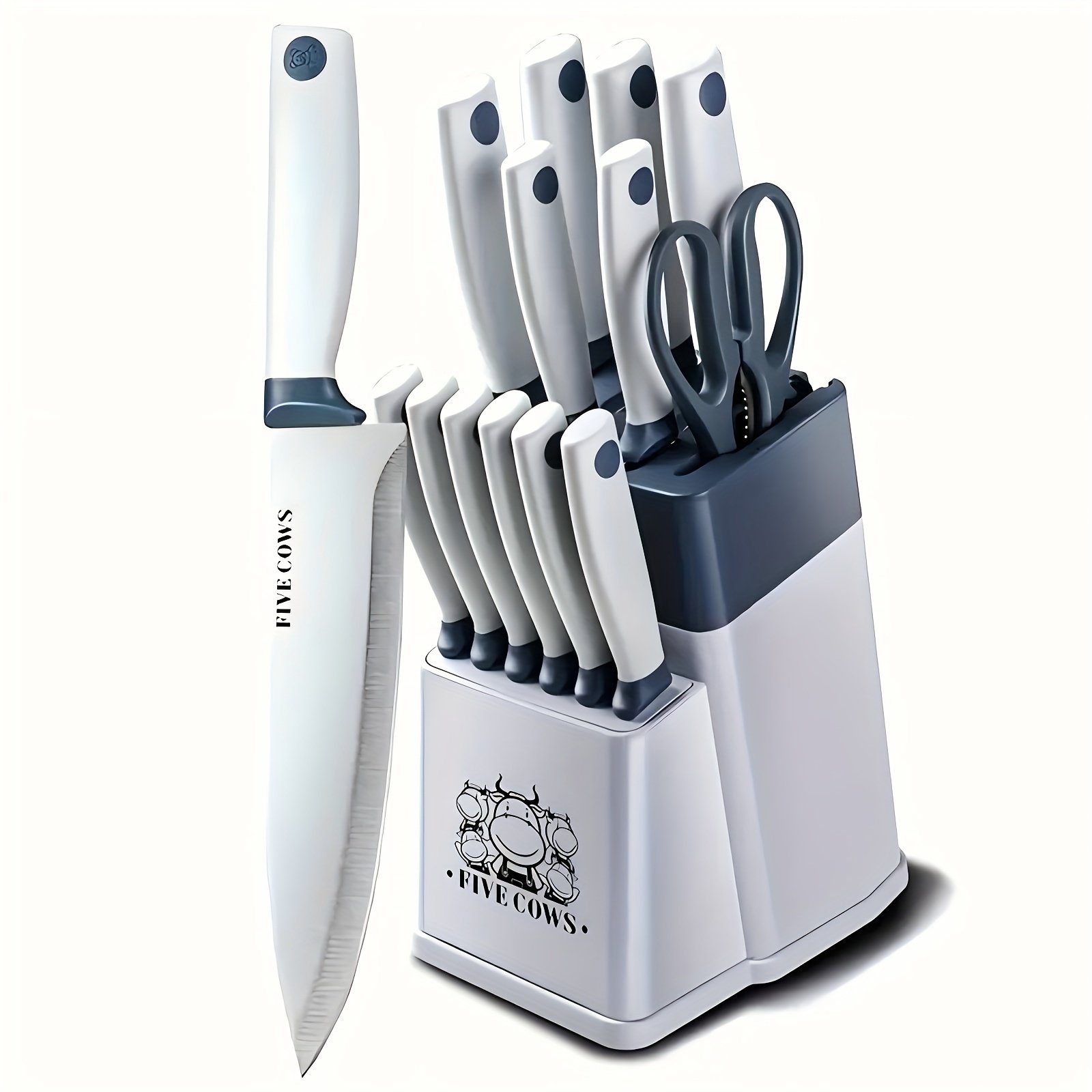 14pcs Kitchen Knife Set | High Carbon Stainless Steel Blades, German Stainless Steel, Dishwasher Safe, Built-in Sharpener, Non-Slip Handles, Ambidextrous, Black and White