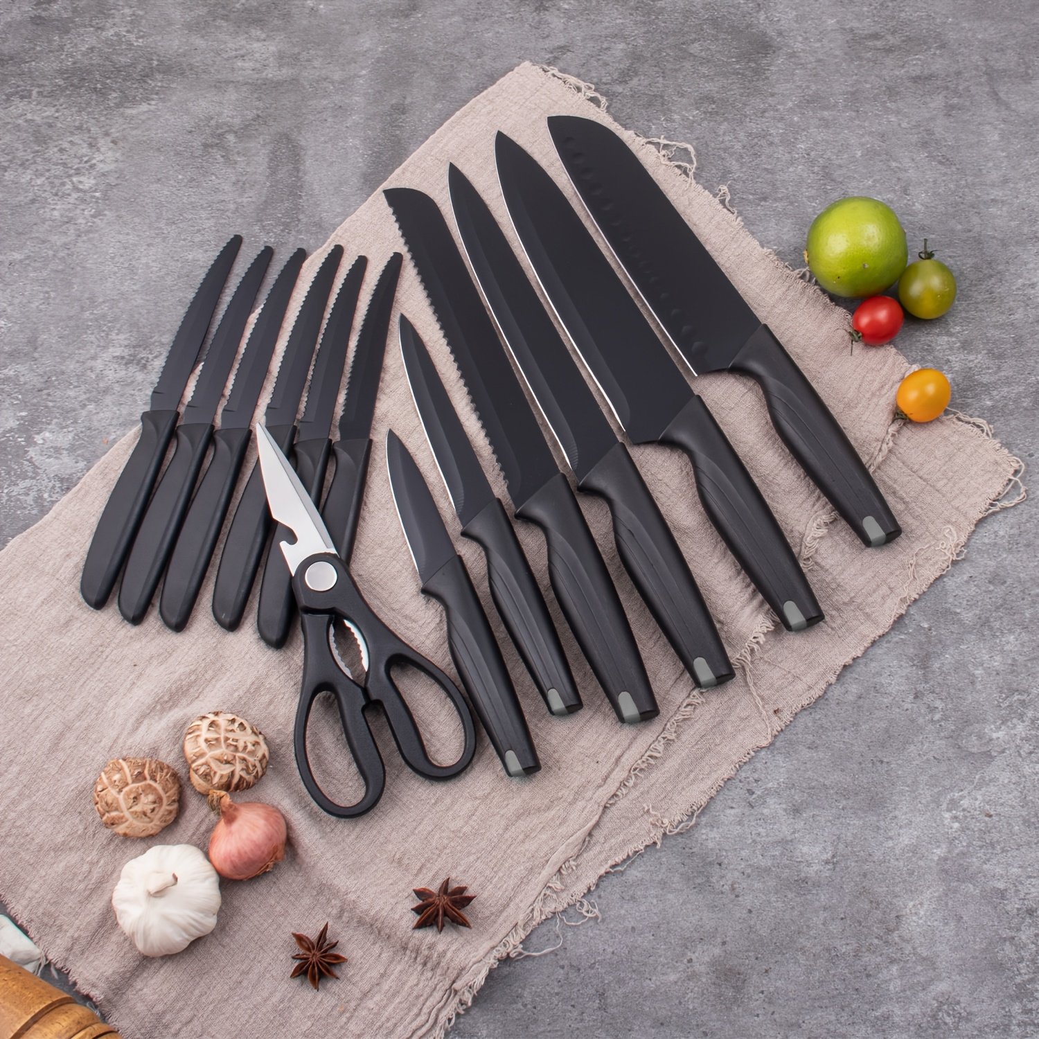 15pcs Professional Kitchen Knife Set with a Black Knife Holder, Including Chef’S Knives And Kitchen Scissors, Made of High-Carbon Stainless Steel for Exceptional Sharpness, Suitable for Home And Restaurant Use, Perfect for Christmas And New Year