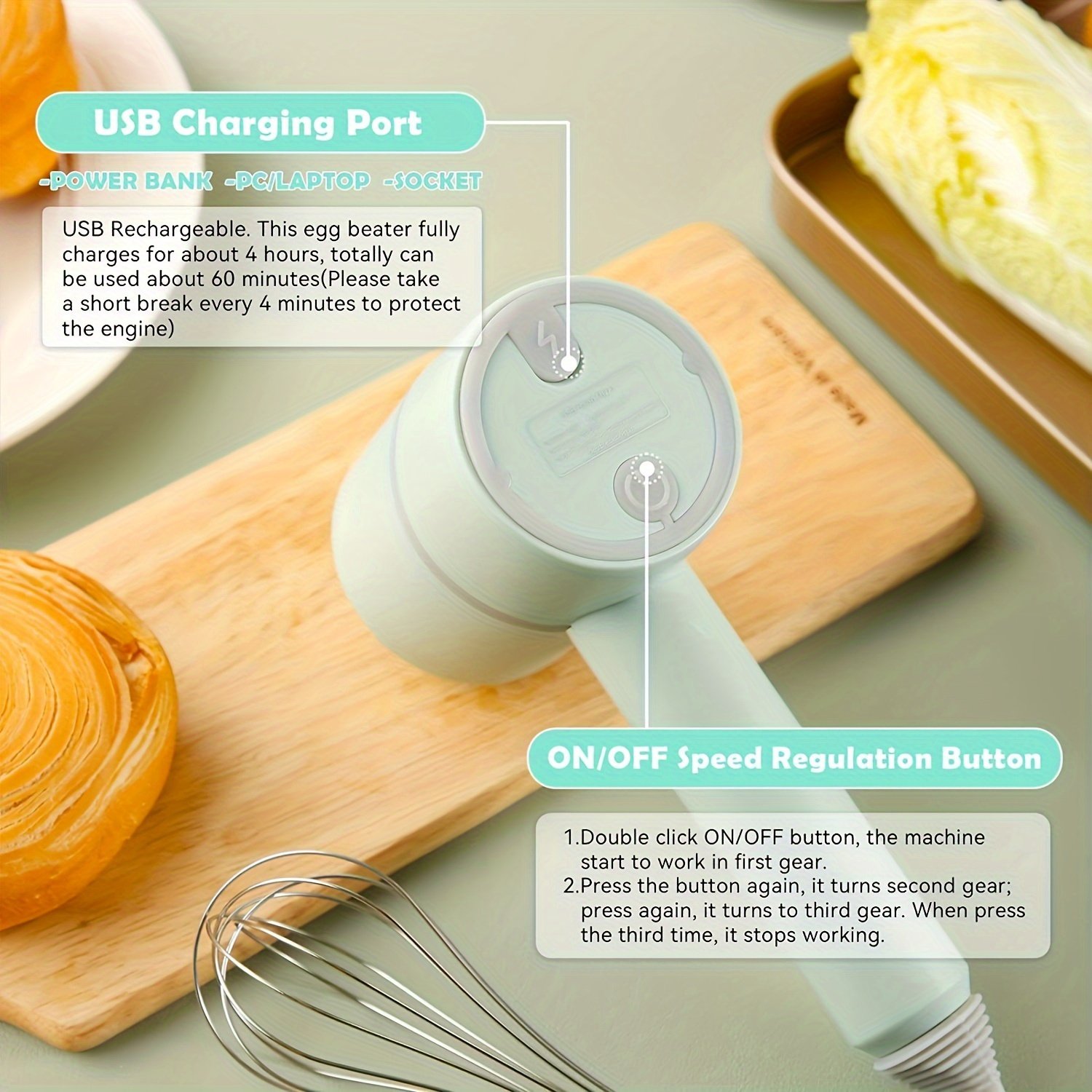 1pc Hand Whisk Electric 3 Speed Handheld Mixer 30W,Two Whisk Mount for Eggs, Cream, Batters, Wireless & RechargeableSuitable for Kitchen and Outdoor Use Gifts Can Be Given as Gifts