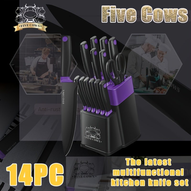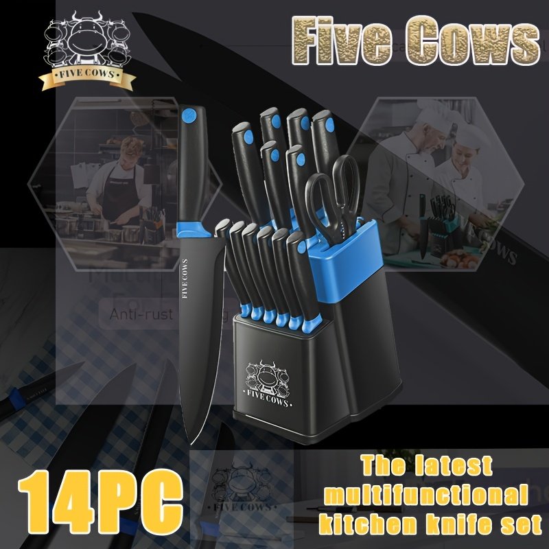 ![[Best Holiday Gift] 14pcss Five Cows 14pcs Knife Set With Sharpener Block, Stainless Steel, Steak Knife, Cutting Knife, Fruit Knife, Anti Slip Handle, Dishwasher, Safe Kitchen Knife, Built-in Sharpener, Best Holiday Gift In Dark Blue, White, Black, And Red](https://img.kwcdn.com/product/fancy/156519c5-44f5-410d-b54a-0f99dc23709b.jpg)
