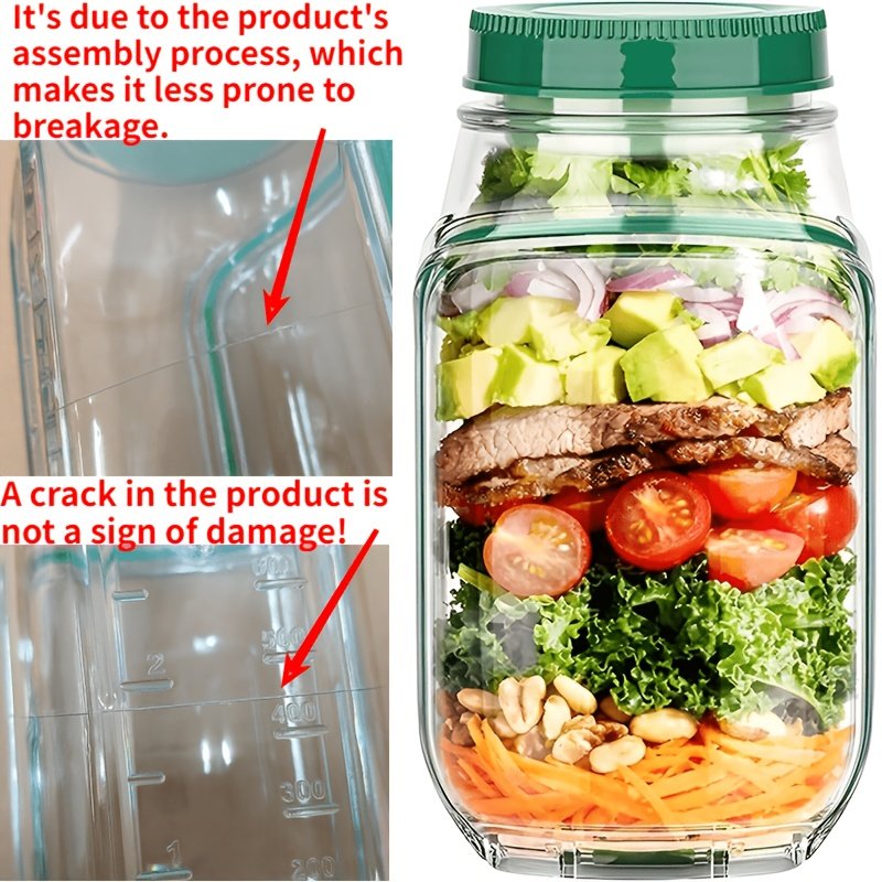 Mason Jar Salad Container, Side Opening, Convenient Lunch Container with Condiment Holder, Microwave, Dishwasher, and Refrigerator Safe. Ideal for Lunch, Dinner, Office, and Travel. A Practical Kitchen Gadget.