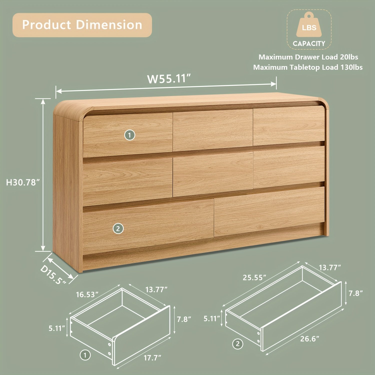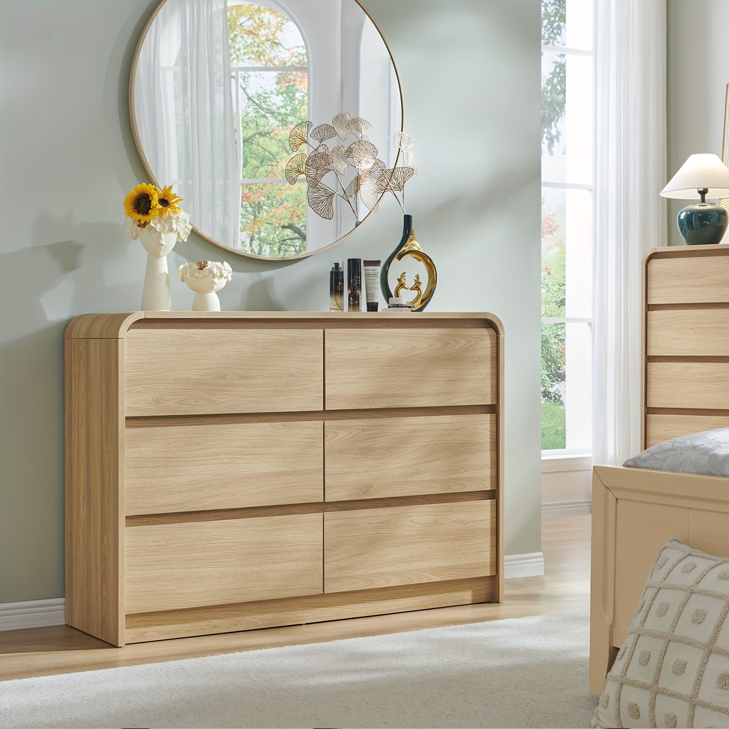 Modern Bedroom Drawer Dresser, Curved Profile Design Drawer Cabinet, Wooden Mid-Century Style Storage Dresser, for Bedroom And Living Room, Natural OakModern Bedroom Drawer Dresser, Curved Profile Design Drawer Cabinet, Wooden Mid-Century Style Storage Dresser, for Bedroom And Living Room, Natural Oak