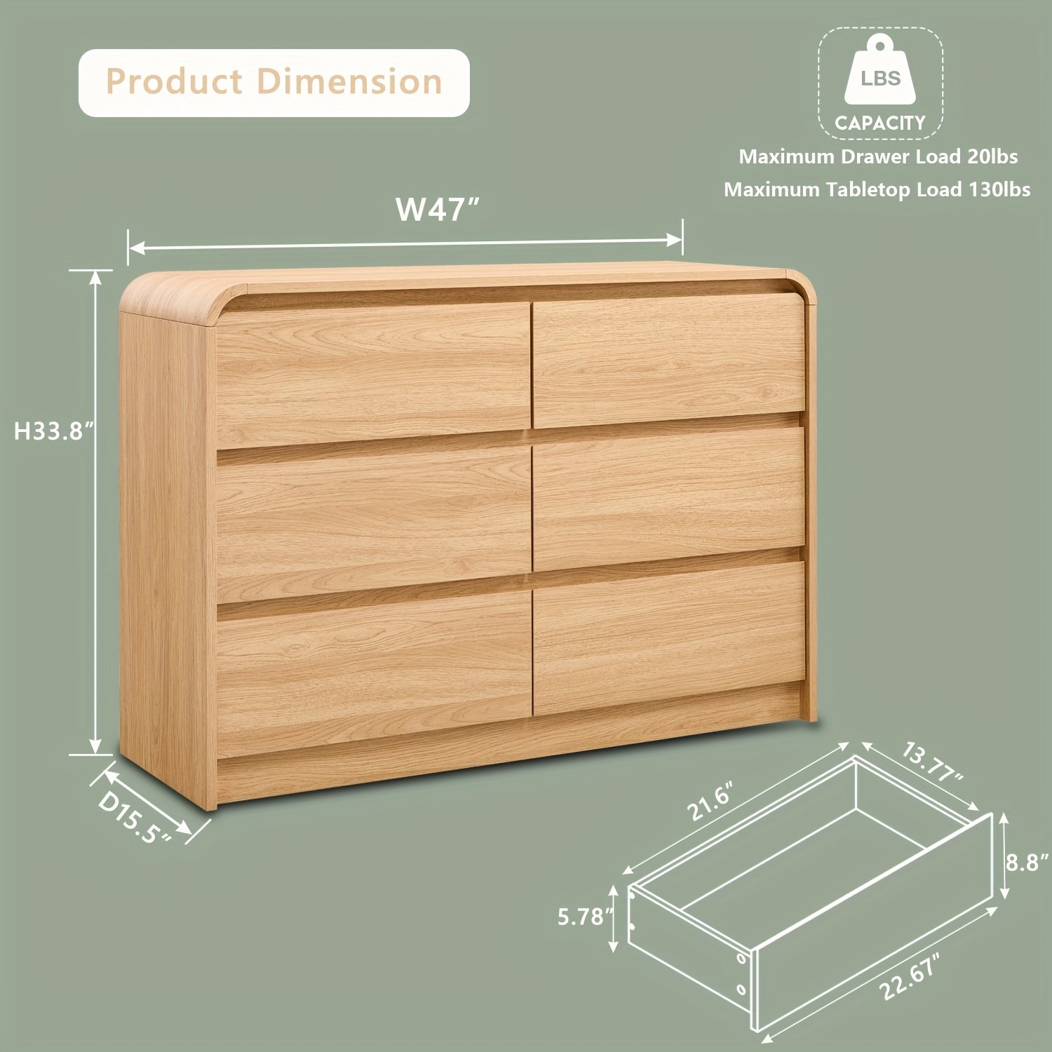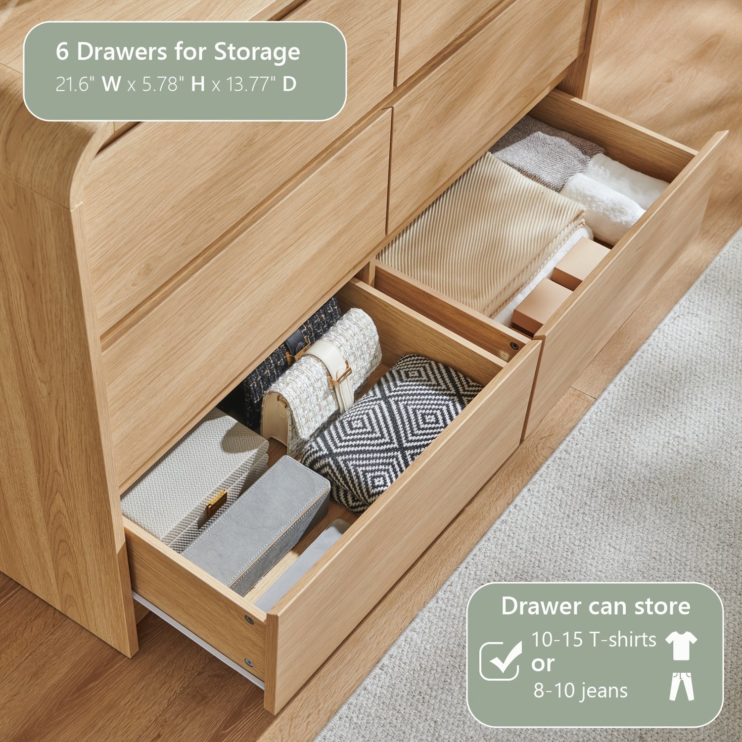 Modern Bedroom Drawer Dresser, Curved Profile Design Drawer Cabinet, Wooden Mid-Century Style Storage Dresser, for Bedroom And Living Room, Natural Oak
